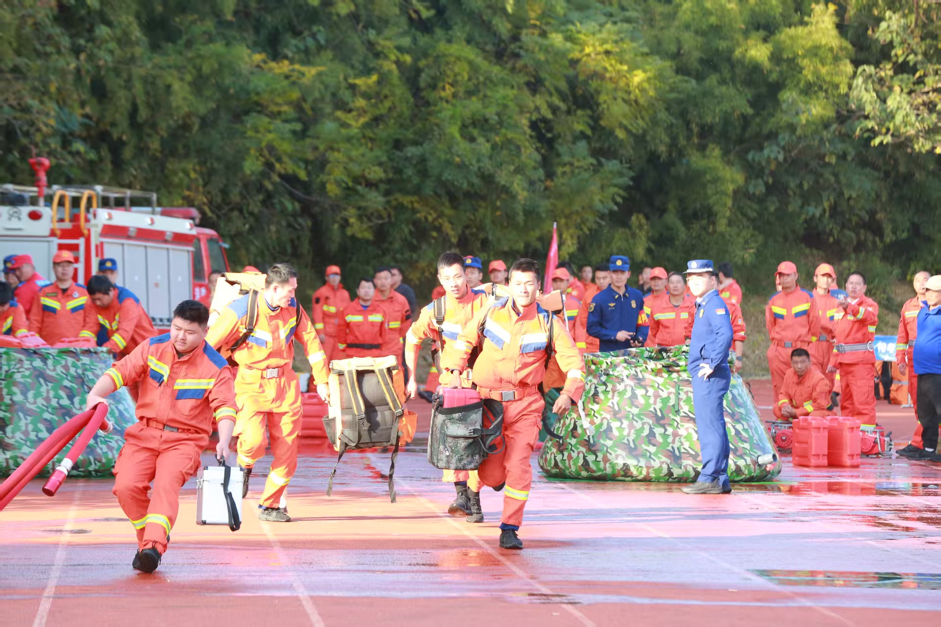 11月26日至27日,2025年武汉市第二届森林消防职业技能比武竞赛在江夏区成功举办,来自全市12支代表队、96名基层一线森林扑火队员同台竞技,围绕实战技能展开激烈角逐。比武竞赛聚焦“以赛促学、以比促练、以竞强能”的目标,紧扣森林消防实战需求,精心设置了灭火装备操作应用、300米水泵接力和1500米负重越野三个竞赛科目,全方位检验基层一线扑火队员的体能基础、装备操作和团队协同作战能力。