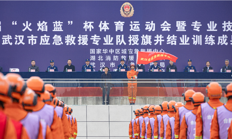 12月10日,市应急管理局党委书记、局长马仁钊为武汉市应急救援专业队授队旗,标志着我市首支自然灾害类专业化、常备化应急救援队伍完成组建并投入战备执勤。