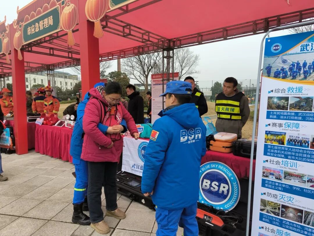 在武汉市应急管理局的统一规划下, 各参展单位发挥专业特长,构建起全方位、立体化的安全宣教矩阵:蓝天救援队、长江救援队的队员们利用模拟人和AED训练机,手把手传授心肺复苏与海姆立克急救法;宝捷应急救援队、常备佳应急带来的水上机器人、破拆工具组等重型装备,让人直观感受到现代救援的力量;武汉博远减灾科技的地震预警大喇叭、信息发布终端,演示了如何为生命安全争取“黄金秒数”;黄鹤救援的AED应急车队和“黄手环”项目,则体现了对特殊人群的关怀;湖北特西德智能科技的智慧用电设备,将安全防护融入日常生活的每一个细节。这些看得见的装备、学得会的技能,让前来参观的群众切身感受到,安全不仅是概念,更是生活中触手可及的知识与保障。