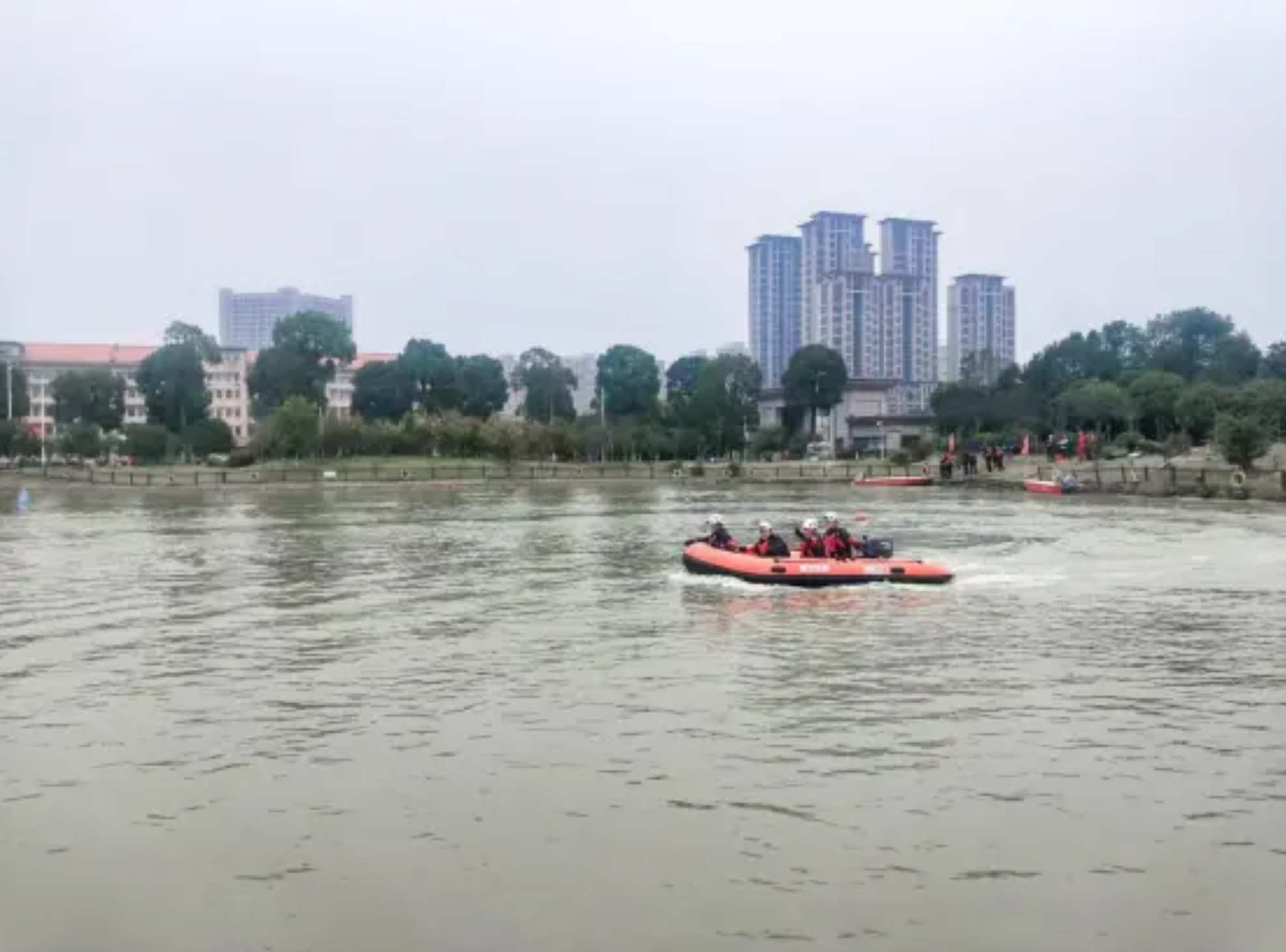 救援舟艇组合(橡皮艇)比武区域,则是另一番景象。参赛队伍驾驶着橡皮艇在模拟的复杂水域中穿梭,时而加速冲刺,时而灵活转弯,展现出高超的水上救援技能。“报告,发现人员落水!”情况紧急,但队员们并未慌乱,他们迅速调整船速和方向,利用橡皮艇的灵活性稳稳地来到“落水人员”旁,迅速将“落水人员”拉回橡皮艇上。