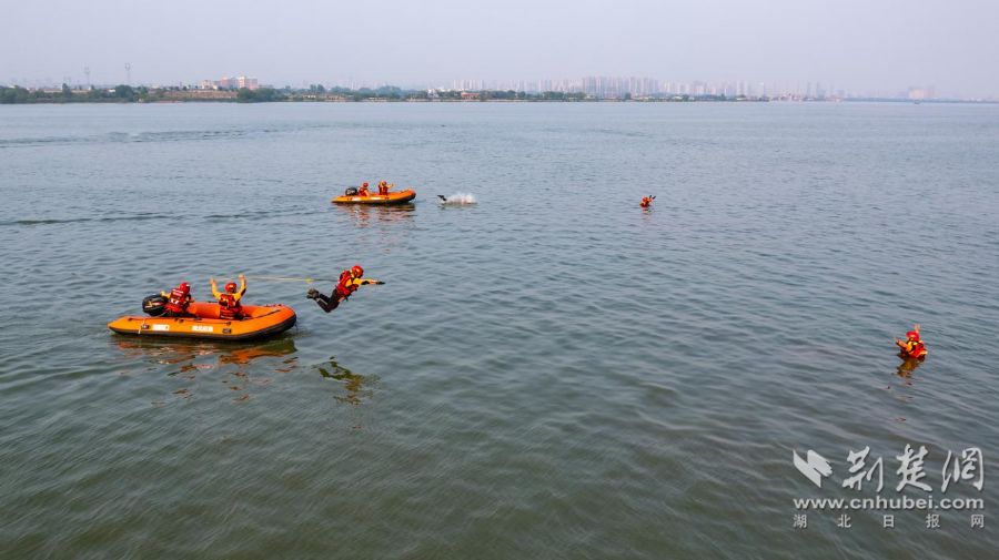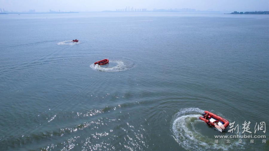 国家华中区域应急救援中心机动队伍、武汉常备佳应急救援队、武汉宝捷救援队分别采取水上飞翼、“O”型救援、活饵救援、翻舟救援、舟艇编队等方式,争分夺秒营救落水人员。